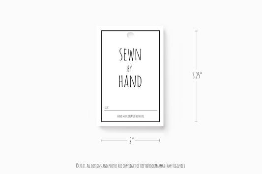 Sewn by Hand - size tags for Handmade Sewist projects - Craft Show prep like a pro Seamstress size label/card/tag- 1pg PDF Instant Download