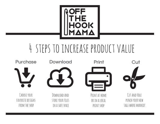 Crochet Tag - PRINTABLE PDF - Hang Tags / Size labels for Handmade crochet projects. 16 tags / page. Perfect for gifting your makes!
