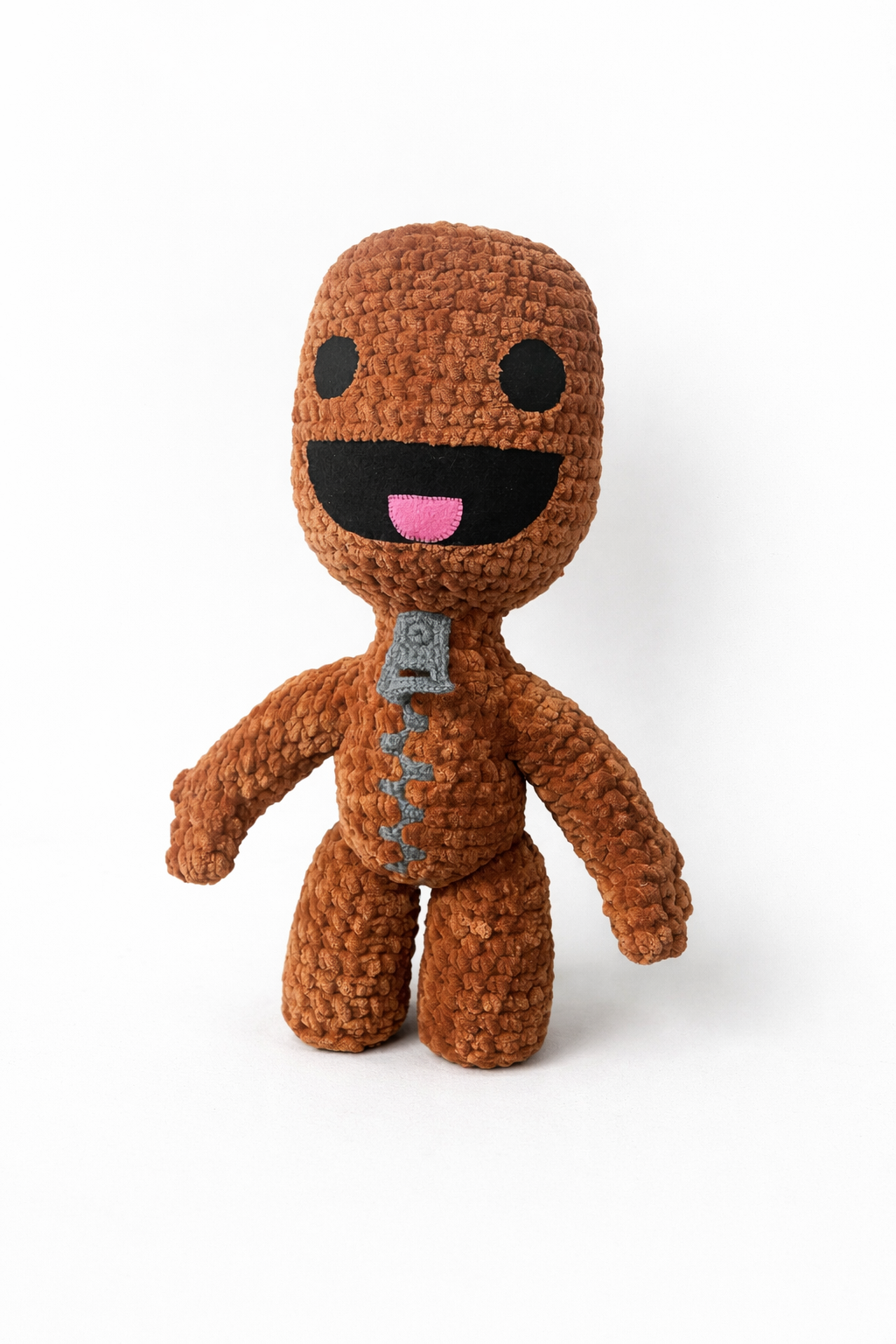 This Handmade Sack Boy Throw Pillow stands approximately 24" tall, is made of extremely soft Chenille yarn and can be used as a decorative fan art collectors item as well as a throw pillow in any space.